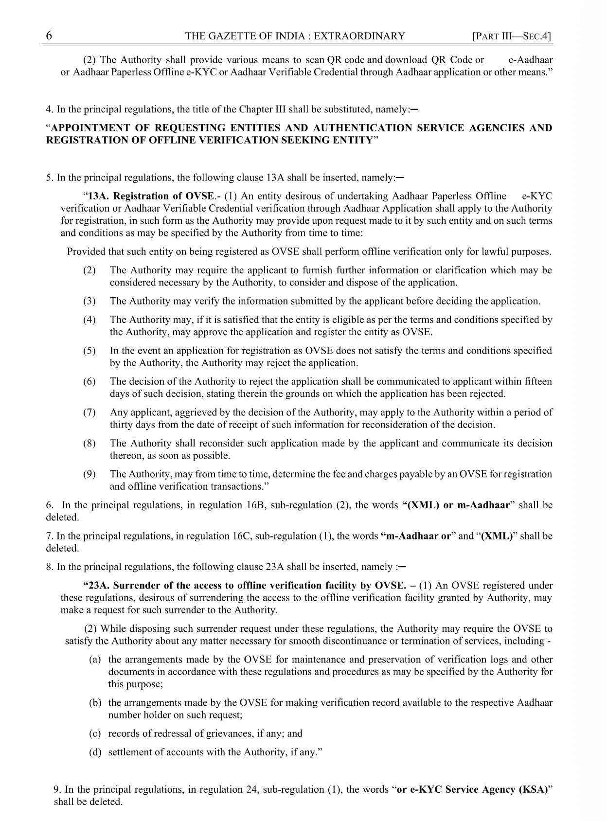 The updated rules introduce a structured process for surrendering verification access, applicable when an OVSE discontinues operations or chooses to exit the ecosystem. Before surrender is approved, UIDAI may require the entity to: