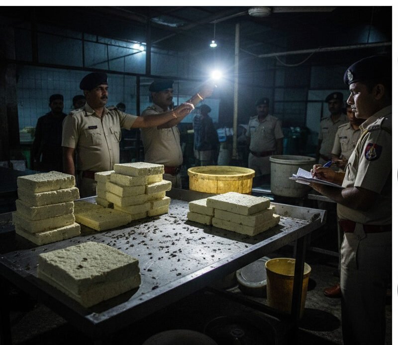 Agra — In a late-night enforcement operation, Uttar Pradesh’s food safety authorities uncovered a large-scale adulteration racket in Agra, where paneer (Indian cottage cheese) was being manufactured using palm oil, diluted milk and industrial chemicals. Officials seized more than five quintals of counterfeit paneer and recommended suspension of multiple dairy licences as investigators examine how such an operation flourished in densely populated areas for years.