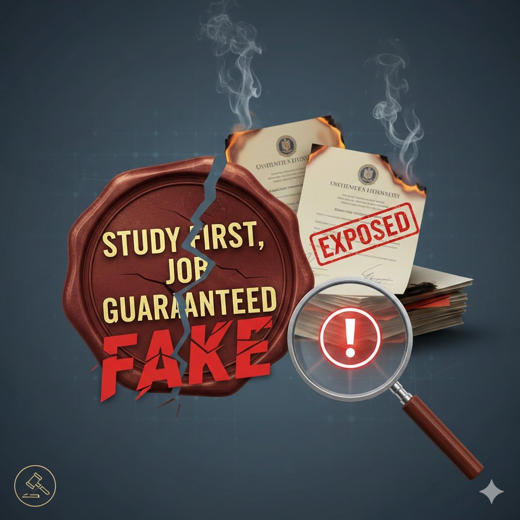 “Fake websites, fabricated approvals and counterfeit degrees together form an organized fraud chain. Students must independently verify every document.”