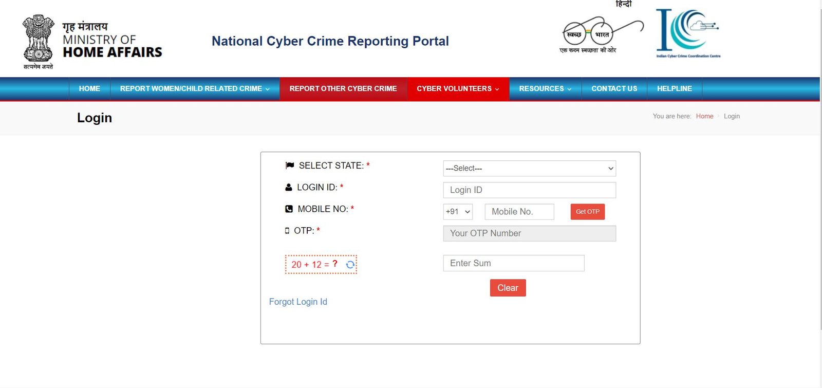 • To register on National Cybercrime Reporting Portal as Cyber Volunteer. First login to the website cybercrime.gov.in.