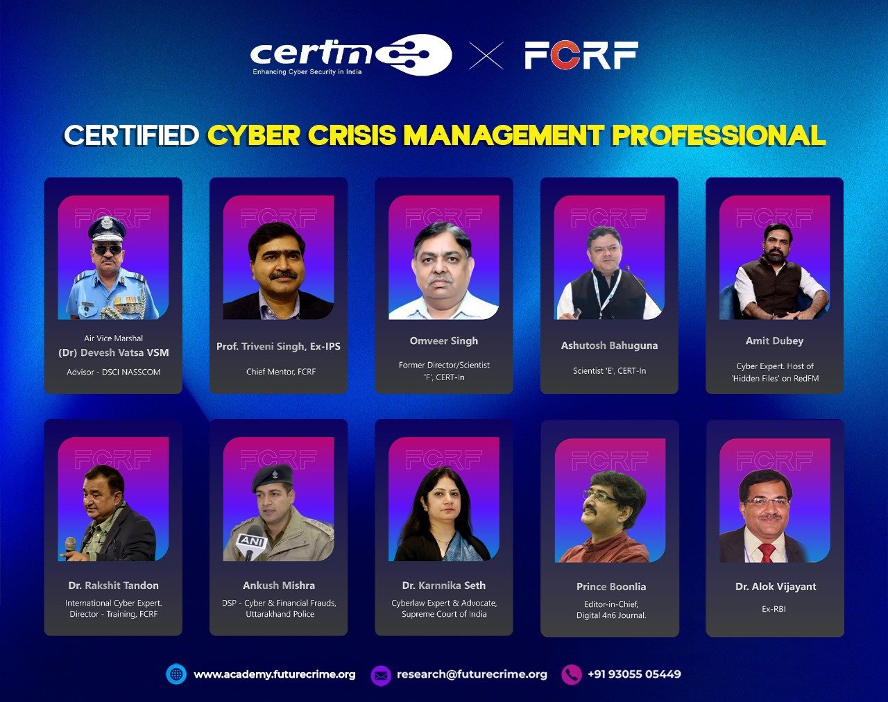As cyber threats grow in scale and sophistication, India’s top regulatory bodies—from RBI and SEBI to IRDAI and NABARD—have made it clear: cybersecurity is no longer just an IT issue. It is a boardroom priority. In response to this urgent national need, the Certified Cyber Crisis Management Professional (CCMP) program has been launched by the Future Crime Research Foundation (FCRF) in partnership with CERT-In, India’s top cybersecurity agency.