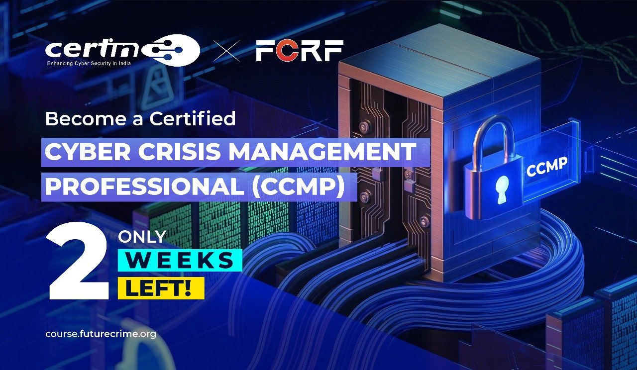 With only two weeks remaining for the official launch of the Certified Cyber Crisis Management Professional (CCMP) course, the Future Crime Research Foundation (FCRF), in collaboration with CERT-In, has issued a call for registrations. The course, set to commence on 5th July 2025, is already witnessing record participation from senior civil servants, defence officers, Chief Information Security Officers (CISOs), digital forensics teams, cybersecurity professionals, and key industry decision-makers.