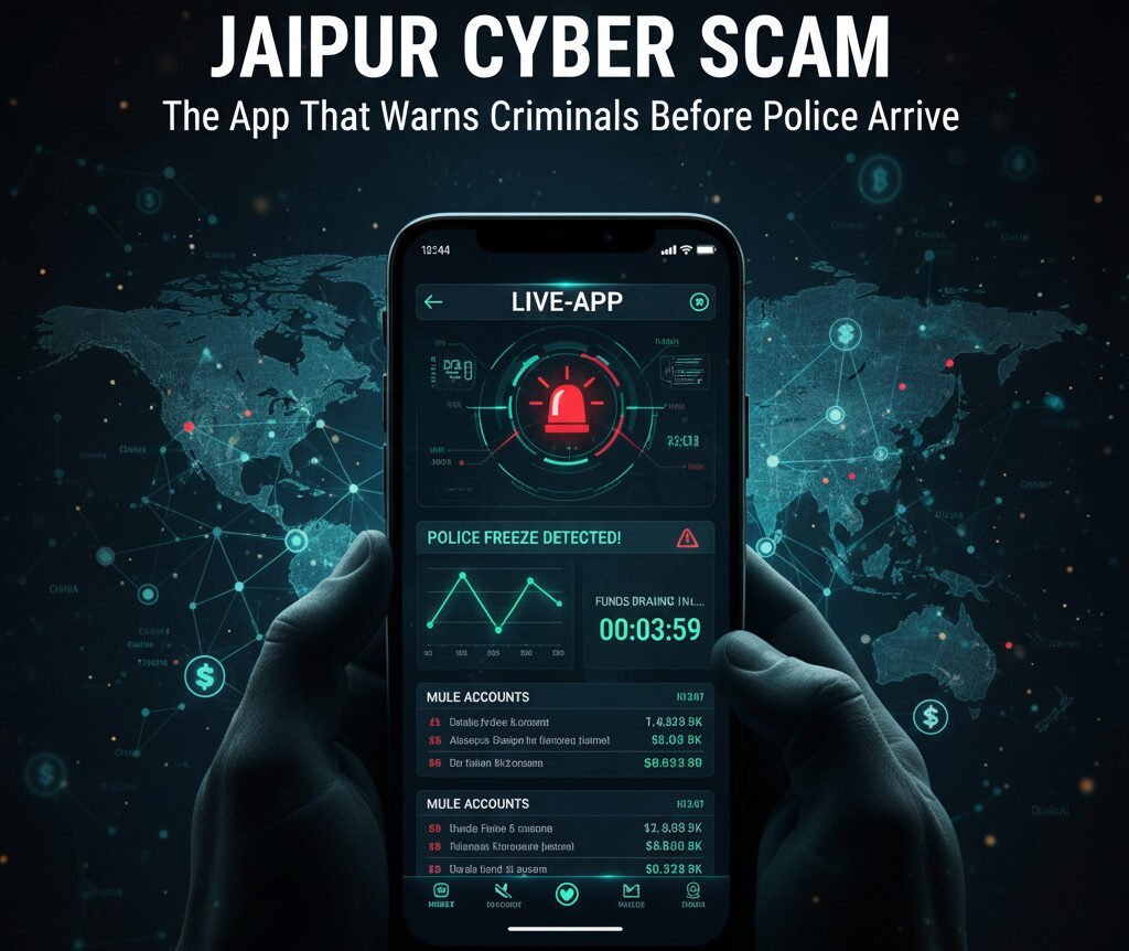 Rajasthan police uncovered a Chinese-made “LIVE-APP” that alerts cyber gangs when accounts are frozen, helping them launder over ₹300 crore through real-time fund tracking.