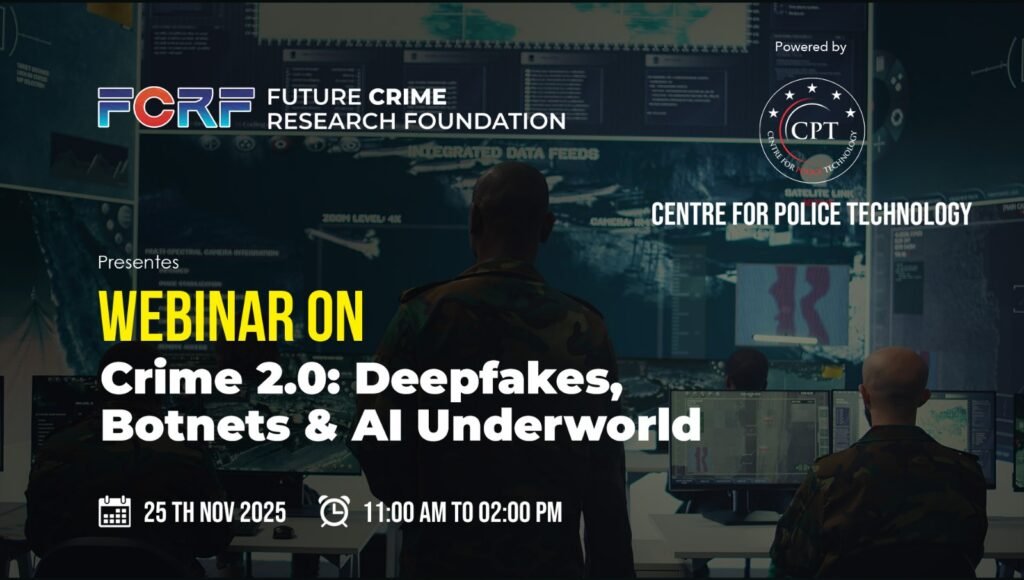 This webinar is being organized by the Centre for Police Technology. This operational session is strictly restricted to serving Indian Police officers (all ranks), CAPF, NIA, IB, State CID/Cyber Cells, Defence Intelligence, Customs, ED, DRI and authorised Corporate Fraud Investigators. No media, no vendors, no recording, no public sharing. Date : 25th Nov Time : … Continue reading Crime 2.0 – Deepfakes, Botnets & the AI Underworld: Exclusively for Police, LEAs , Intelligence & Defence Forces
