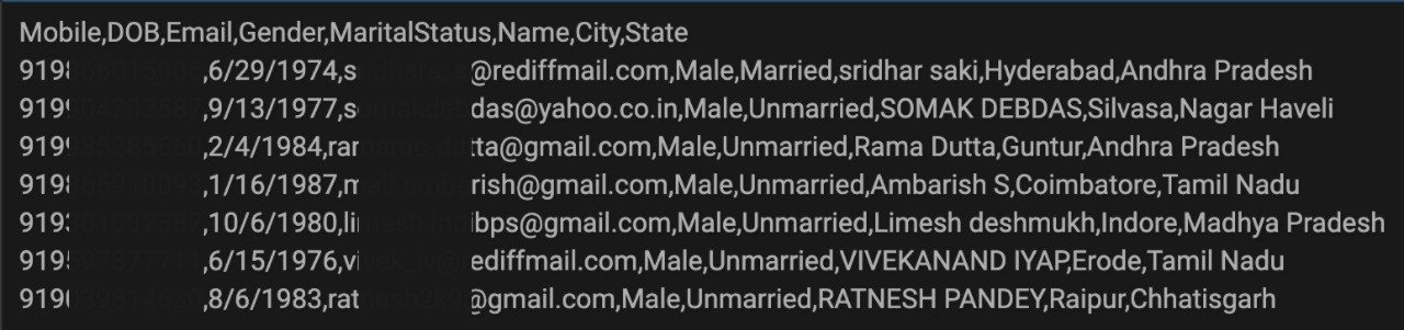 Cyble in its blog has said that this data is easily available for download, and so far, no ransom or payment has been requested by the threat actor. Furthermore, the leaked data includes sensitive user information such as Mobile Number, Date of Birth, Email, Gender, Marital Status, Name, City, and State. After removing duplicates, we could see at least 9 Lakh unique rows of user information.