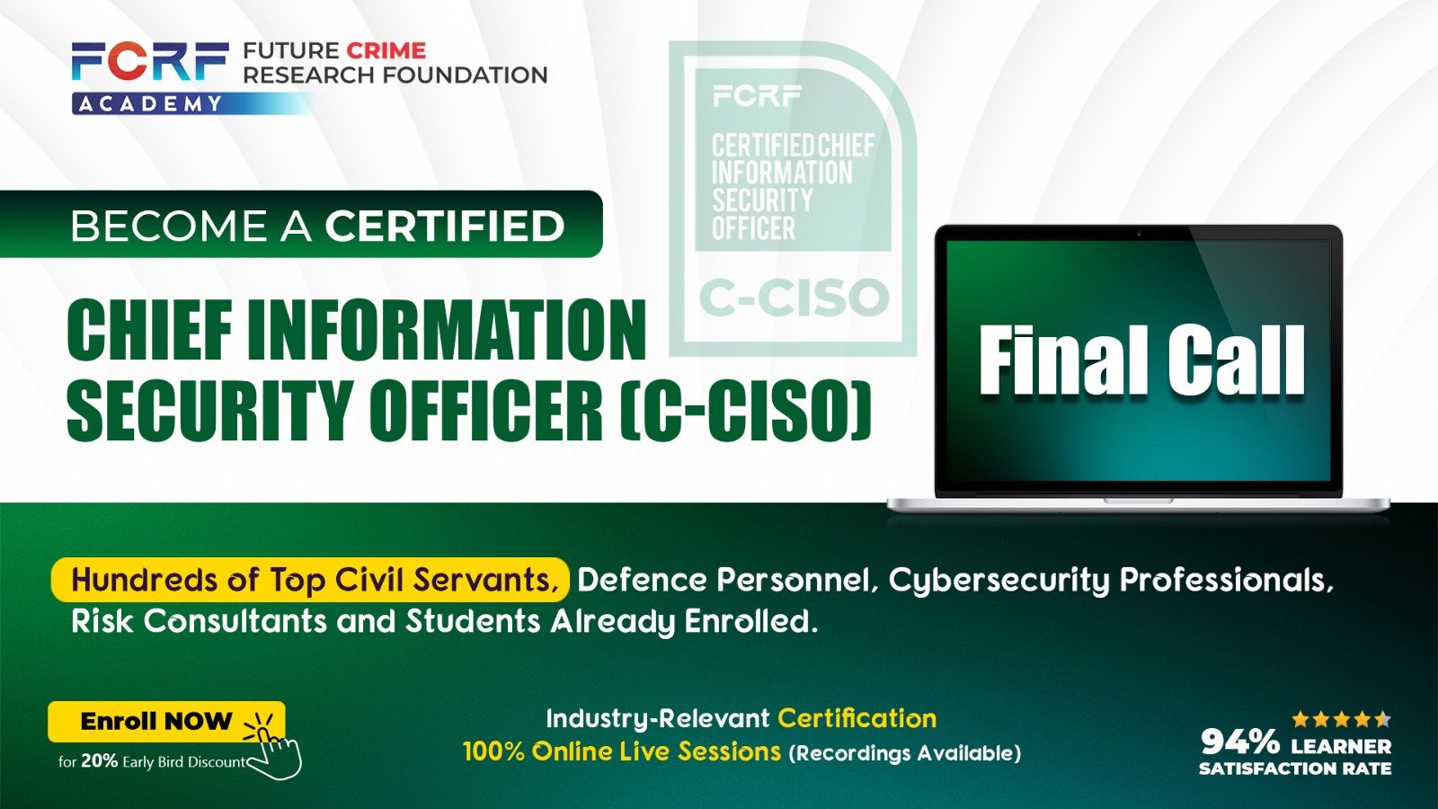 It is in that environment that FCRF Academy is making a final push around its Certified Chief Information Security Officer (C-CISO) program, which is scheduled to begin on April 11, 2026, in the academy’s standard four-week format. The message now is one of urgency: only ten days remain before the cohort begins.