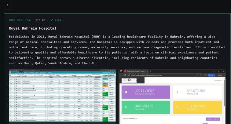 Such groups typically maintain Tor-based leak sites, where they publish stolen data from organizations that refuse to negotiate. The listing of Royal Bahrain Hospital on the group’s leak portal suggests the attackers are attempting to publicly pressure the institution. The ransomware group has also published images it claims show screenshots of compromised systems as proof of the breach.