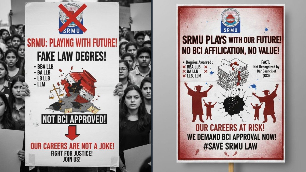 The usually quiet campus of SRMU turned into a site of slogans and placards this week as hundreds of law students rallied against the administration. Their complaint: the university’s law department has been conducting classes without valid recognition from the Bar Council of India, raising fears that their degrees will hold no professional value.