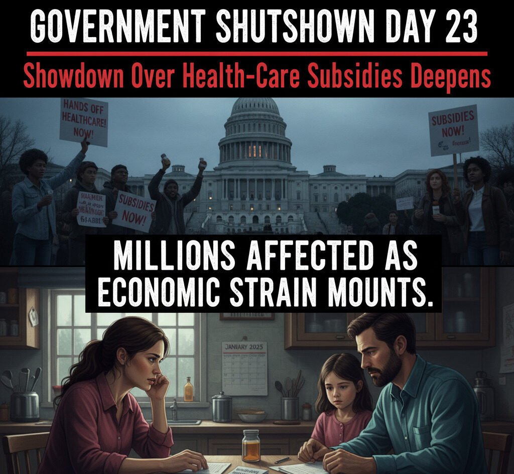 Washington, D.C. — The U.S. government shutdown entered its 23rd day on Thursday, marking the second-longest closure in American history. It now trails only the 35-day shutdown of 2018–2019, which occurred during Donald Trump’s first term amid a fight over funding for a southern border wall.
